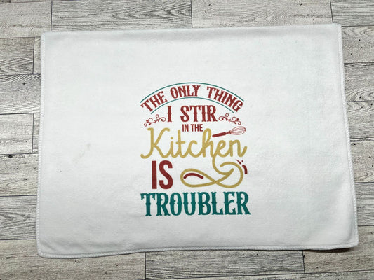 Hand Towel "The Only Thing I Stir in the Kitchen is Troubler"