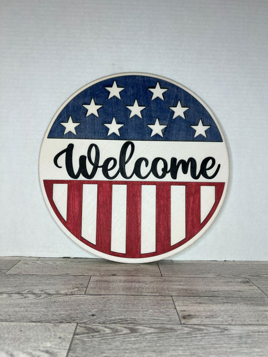 American Flag Theme Welcome Door Sign - 1071
