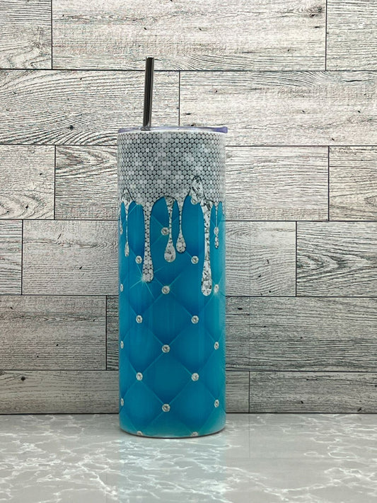 20oz Stainless Steel Tumbler "Teal Diamond Drip"