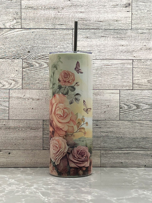 20oz Stainless Steel Tumbler "Paris Flowers"