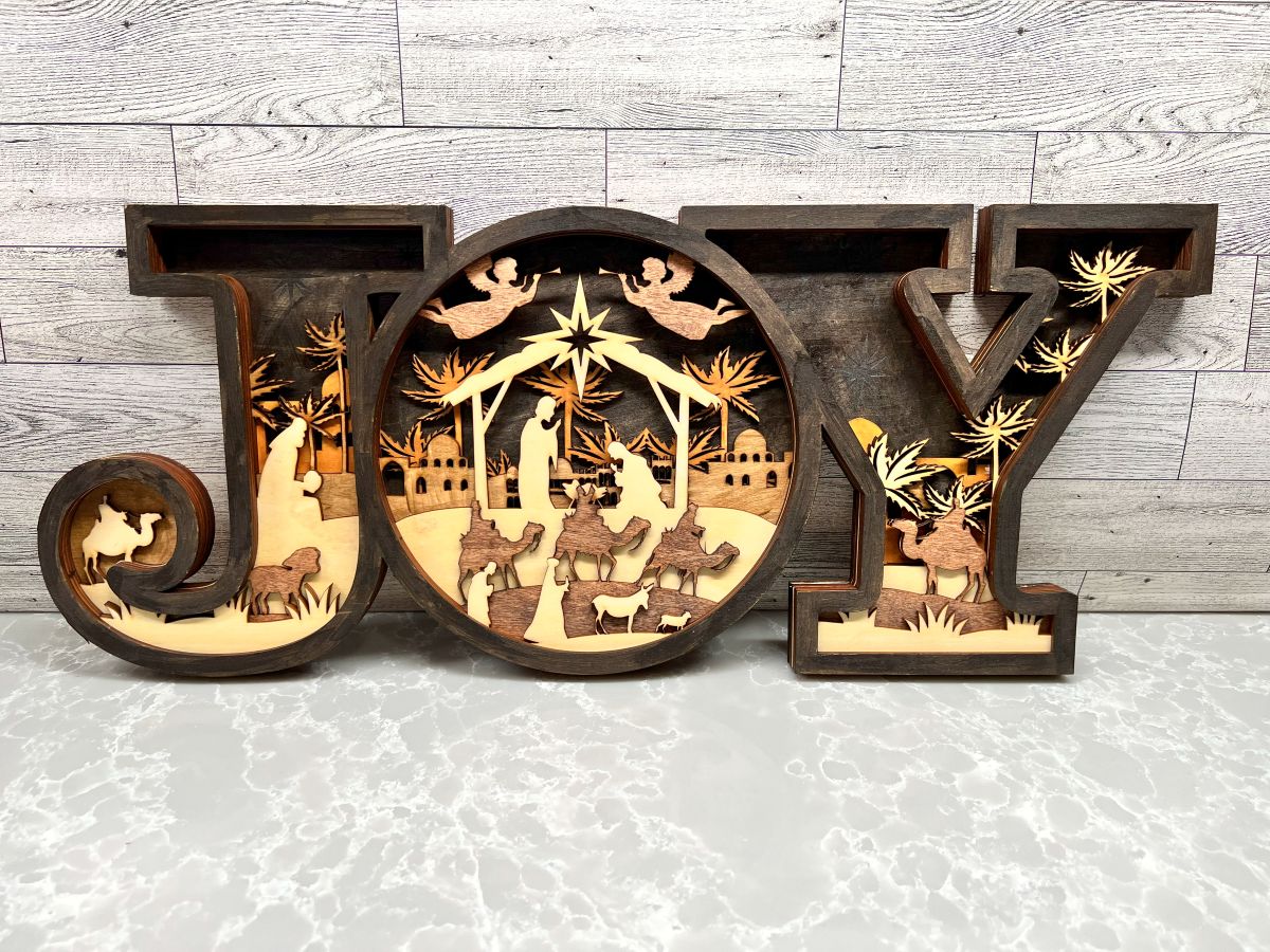Rustic Multilayer Christmas JOY Sign | Handcrafted Laser-Cut Wooden Holiday Decor