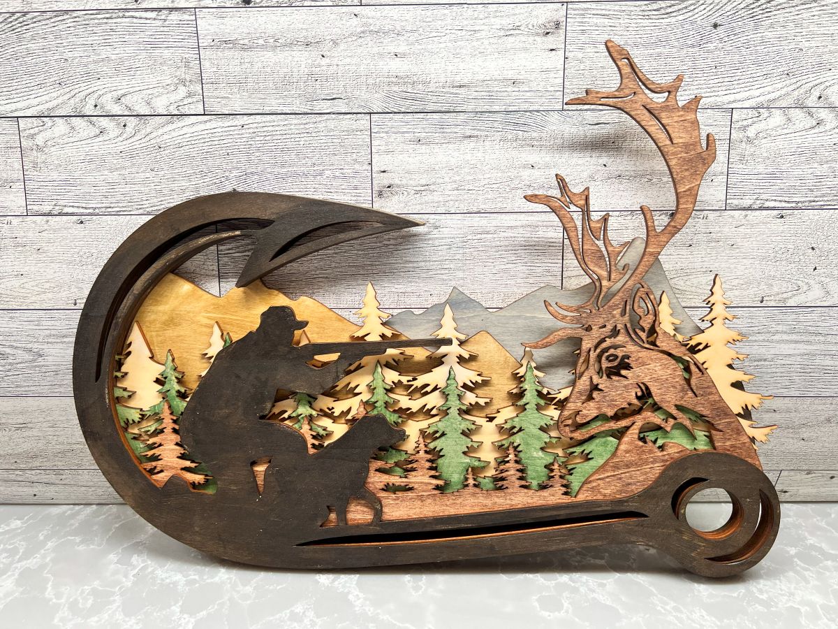 Introducing our Expertly crafted Multilayer Hunting/Fish Artwork. With precision detail and a wood-stained finish, this unique piece adds warmth and inspiration to any room. Measuring 15.5" Wide x 11.5" High x 1/2" Thick, it's the perfect holiday gift for your loved ones.