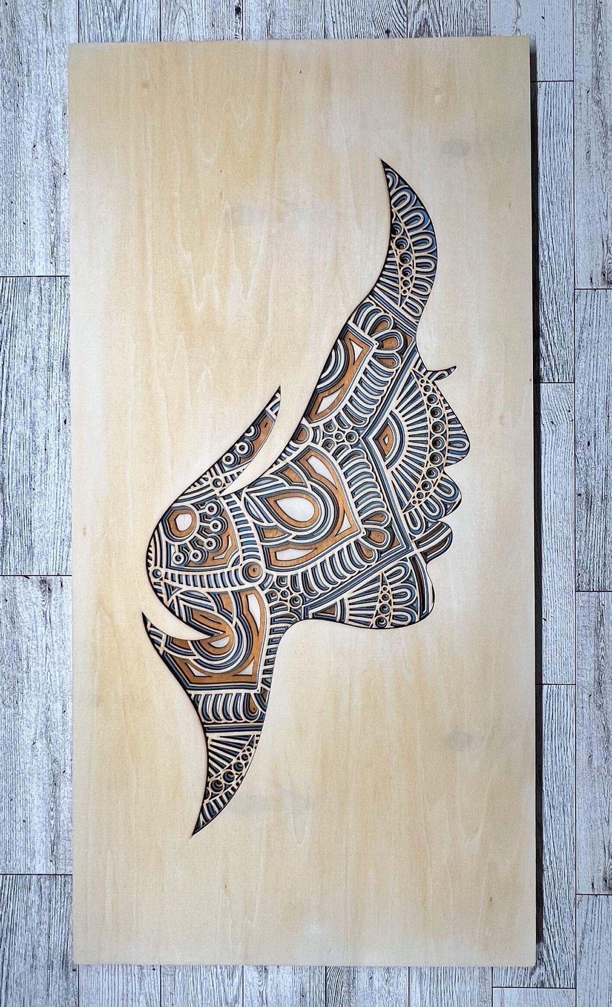 Discover the art of beauty with our Multilayer Ladies Face Artwork. This stunning 3D piece features a sophisticated and detailed image of a woman's face, beautifully crafted with a touch of color. Elevate your space with this unique and captivating artwork. Measurements are 12" Wide x 24" High x 5/8" Thick, it makes the perfect holiday gift for that art lover in your life. Each piece is one-of-a-kind, with colors varying based on saturation. A great addition to any home.